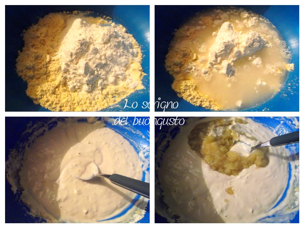 • In a bowl, put the flours with the water and mix, add the mashed potatoes