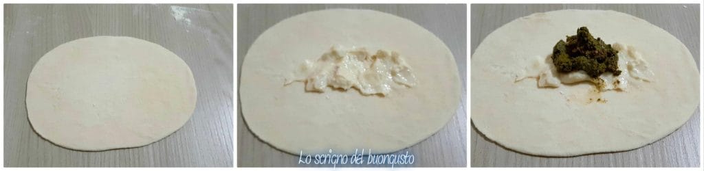 Once risen, roll out the dough to a thickness that is not too thin, but not too thick either, and cut out oval circles to fill.