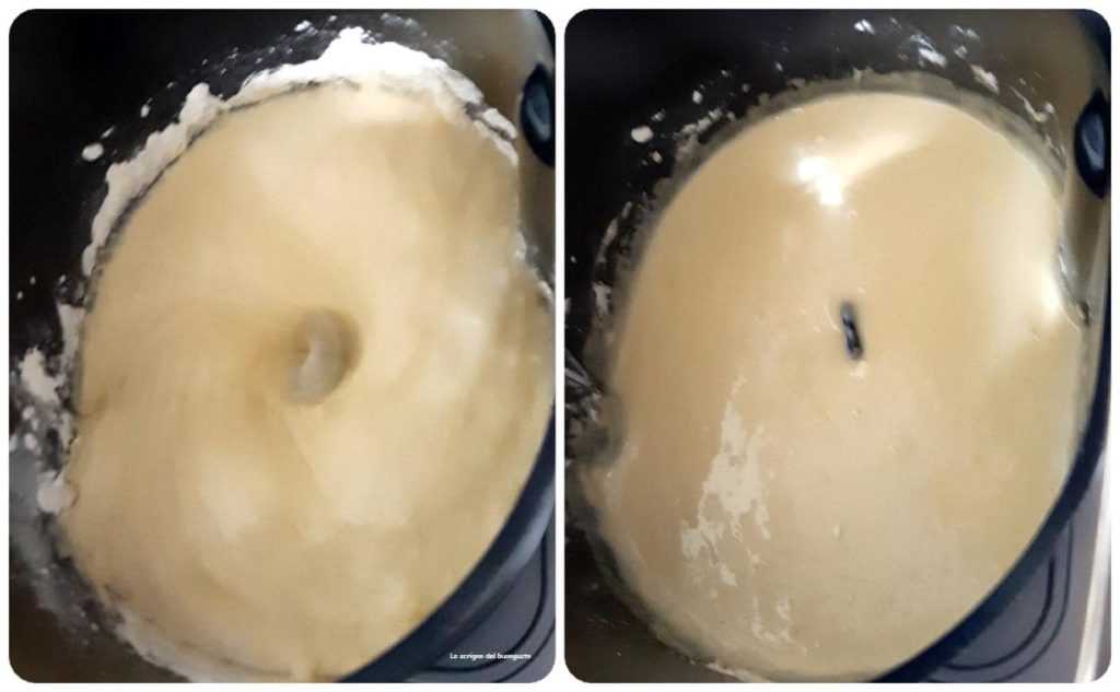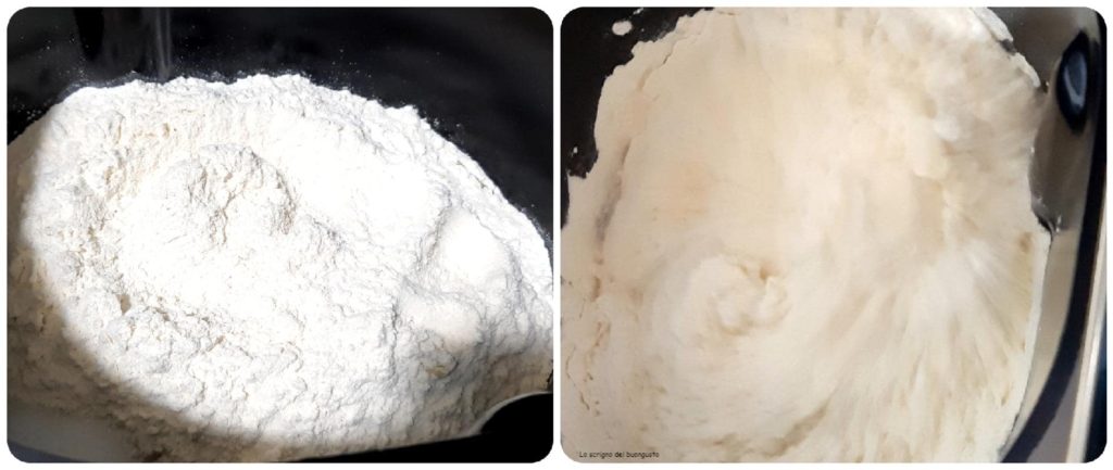 Set the machine to the kneading + baking program, in mine, button 15, let it work and when it has finished kneading, use a spatula to try to push down any residues from the sides of the basket.
