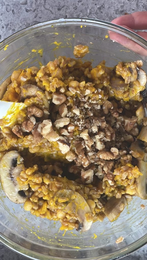 Also, add the mushrooms (without garlic) to the bowl and mix well.