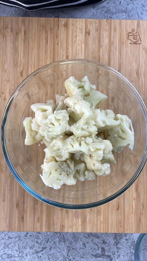 Start the preparation of cauliflower meatballs in the air fryer by taking care of the vegetable.