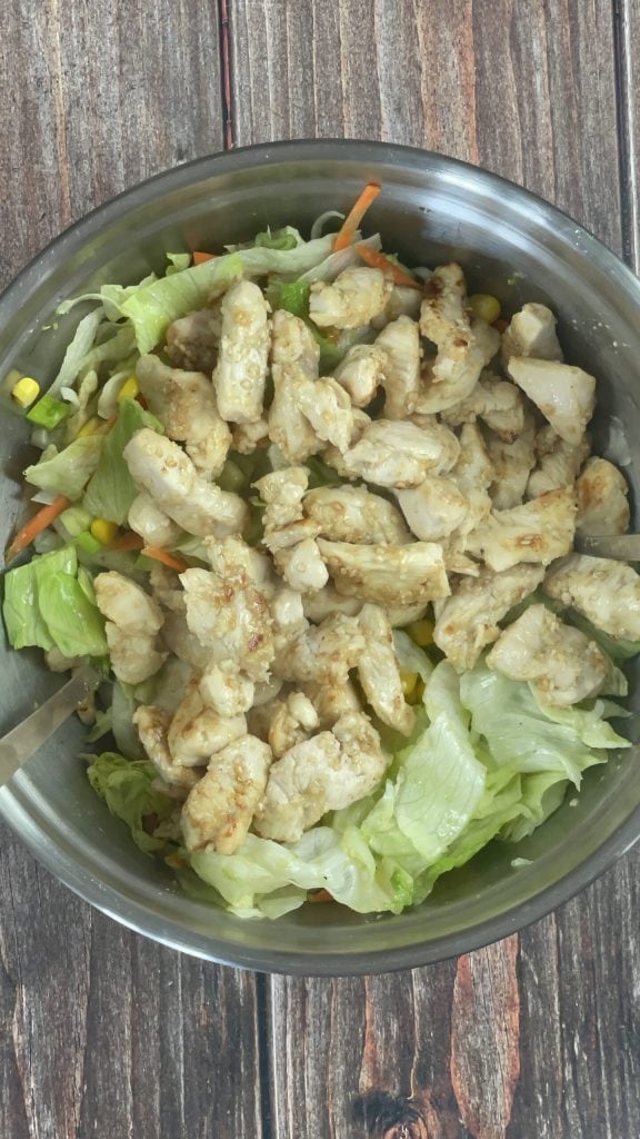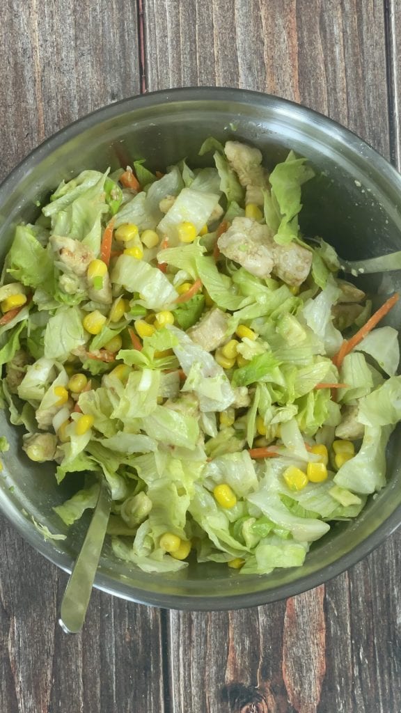 Toss the salad with two tablespoons or salad utensils until all ingredients are well distributed.