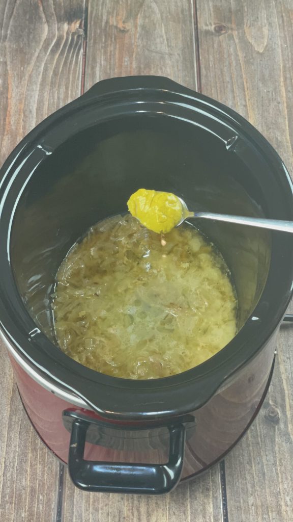 Continue with salt, black pepper, and a heaping teaspoon of mustard.