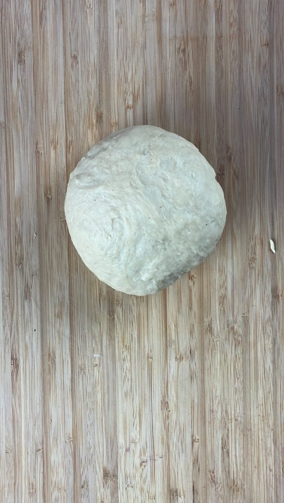 Knead for 15 minutes with a spiral hook at medium speed.Transfer the dough to a work surface, knead it a little more, and let it rise covered until doubled.