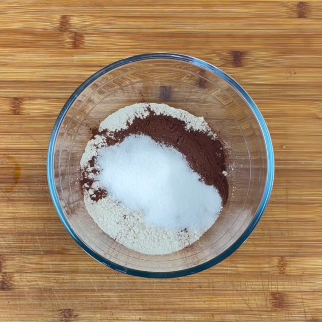 Stir with a spoon while trying to break any lumps of flour and/or cocoa.