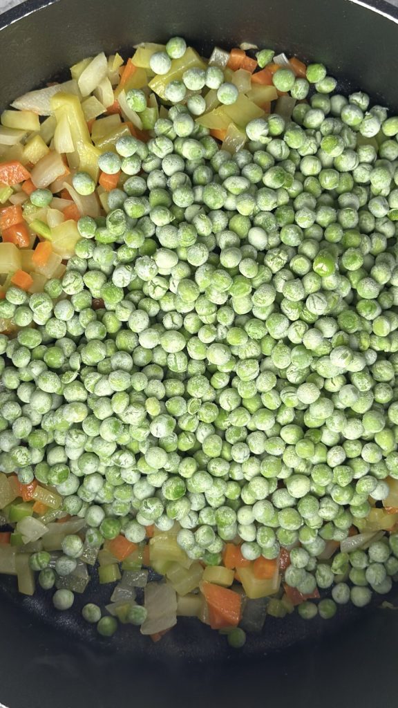• Add the peas as well; I used frozen ones but you can use fresh peas when they are in season.