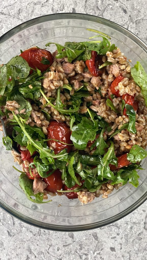 Farro Salad with Tuna, Roasted Cherry Tomatoes, and Arugula – Fresh and Light for Summer