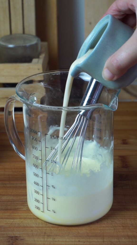 Mix with the whisks until the two ingredients are completely blended and there are no lumps of Greek yogurt.Continue the preparation by adding the milk (I used a soy-based drink) and the vanilla extract.