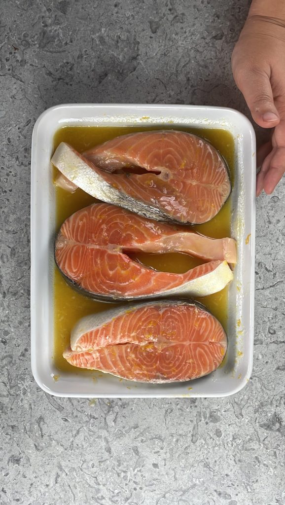 Marinating the salmon fillets for at least an hour allows the flavors to penetrate the flesh, providing an intense taste that remains even during the cooking phase.