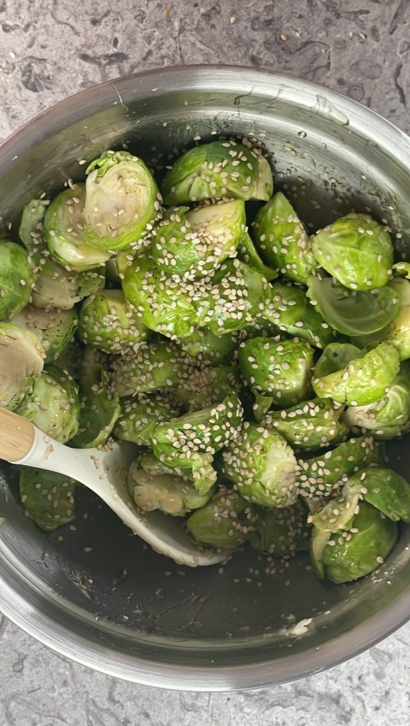 • After about 7-8 minutes, take the Brussels sprouts and stir them well for even cooking.