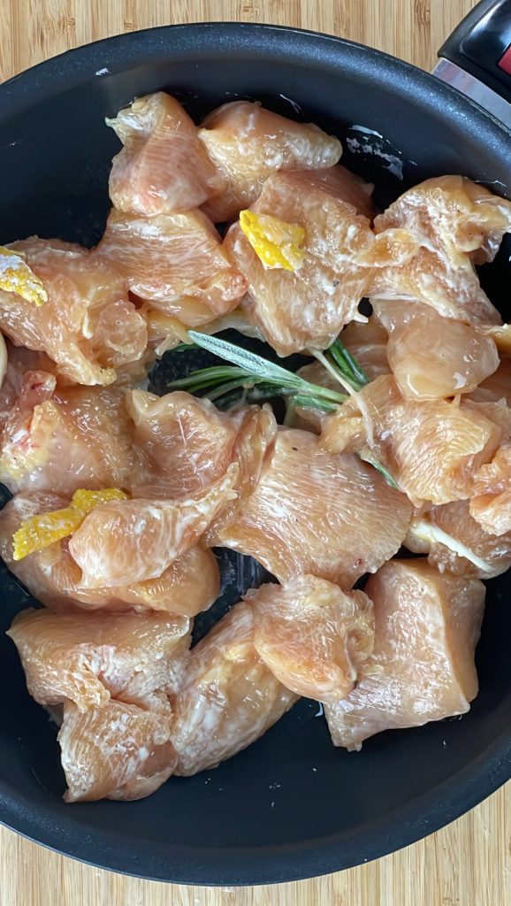 Start preparing the lemon and saffron chicken by marinating the chicken breast.