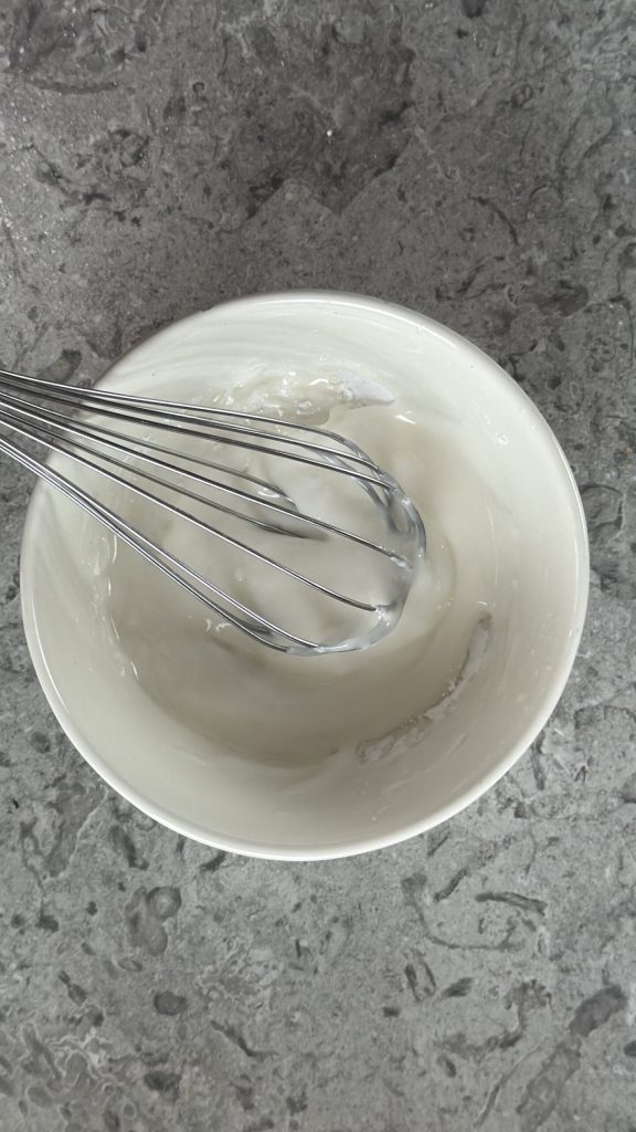 • Meanwhile prepare the lemon glaze: add a few drops of lemon juice to the powdered sugar and whisk.