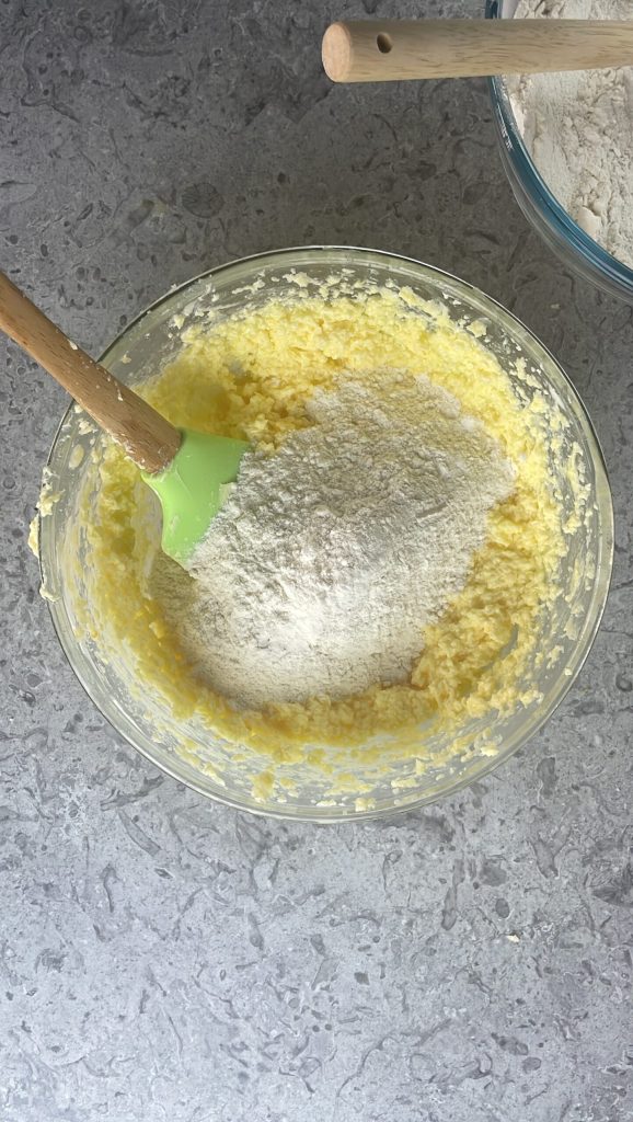 Now add the dry ingredients in two or three batches, mixing before each addition.
