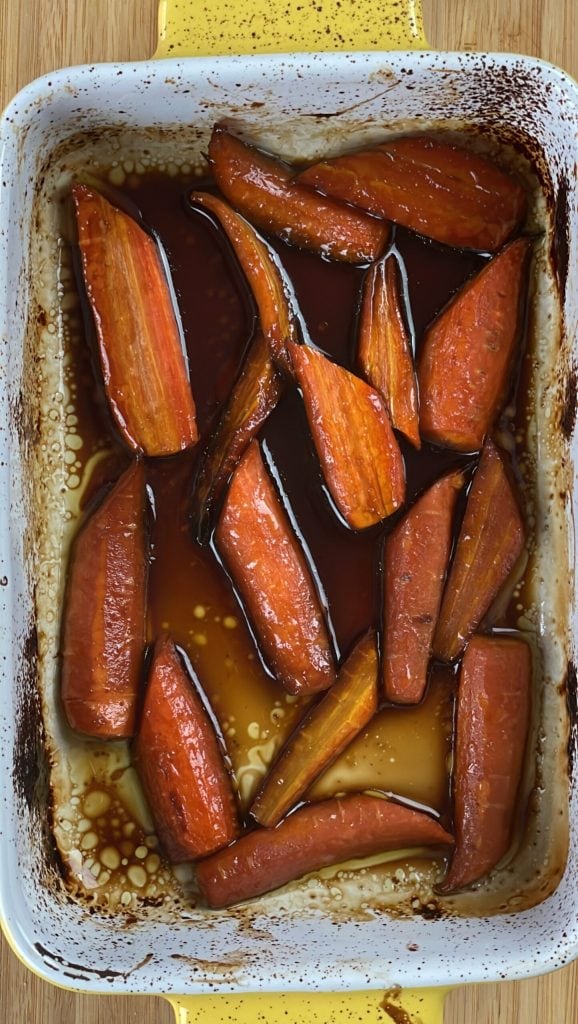 Oven-glazed carrots with soy sauce, a simple yet flavorful side dish, perfect to accompany meat or fish dishes.