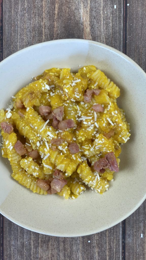 Pasta with Pumpkin Cream and Bacon