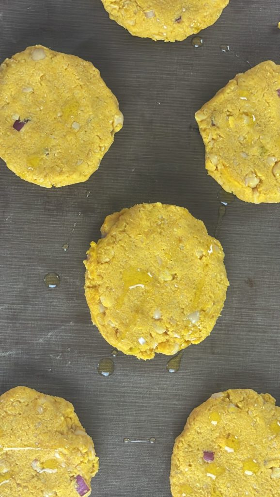 To prepare them, it only takes a few minutes: blend the steamed pumpkin with chickpeas and smoked paprika, which gives an irresistible aroma and a slightly spicy touch. A bit of chickpea flour helps compact the mixture, and in just a few steps, you form burgers ready for the oven. Baking them makes them golden and light, without the need for frying.