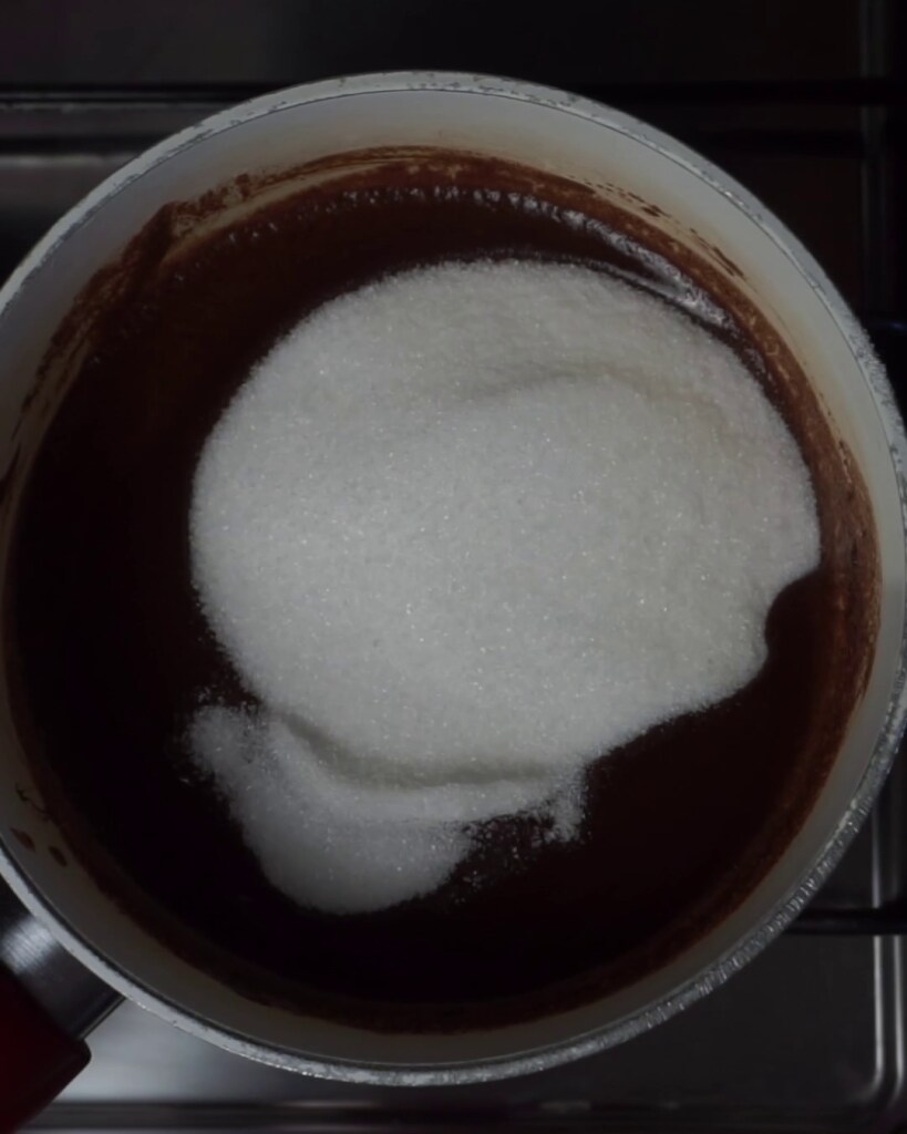 • Once both ingredients are melted, turn off the heat and add the sugar.