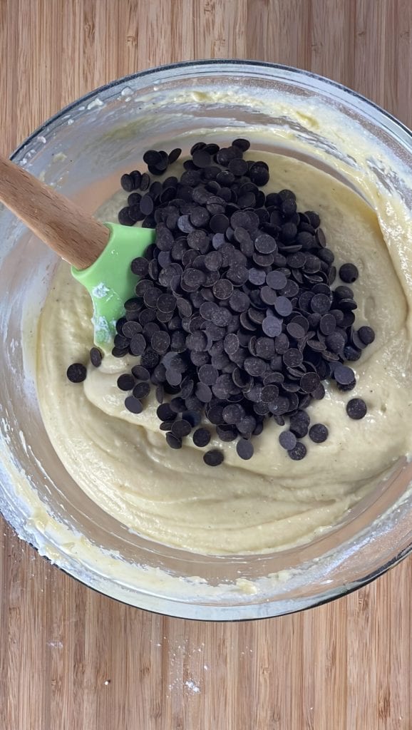Finish the batter by adding 1/2 cup of chocolate chips.