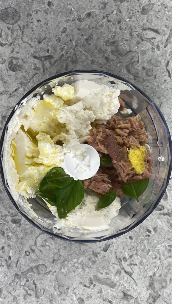 The base is made with cow’s ricotta and tuna in oil, two ingredients that perfectly complement each other, guaranteeing a creamy texture and a balanced flavor. Anchovy paste adds savoriness, while lemon zest gives a citrus note making the cream lighter and more aromatic. A drizzle of extra virgin olive oil and a few fresh basil leaves complete the preparation, transforming a simple preparation into a cream with a Mediterranean taste.