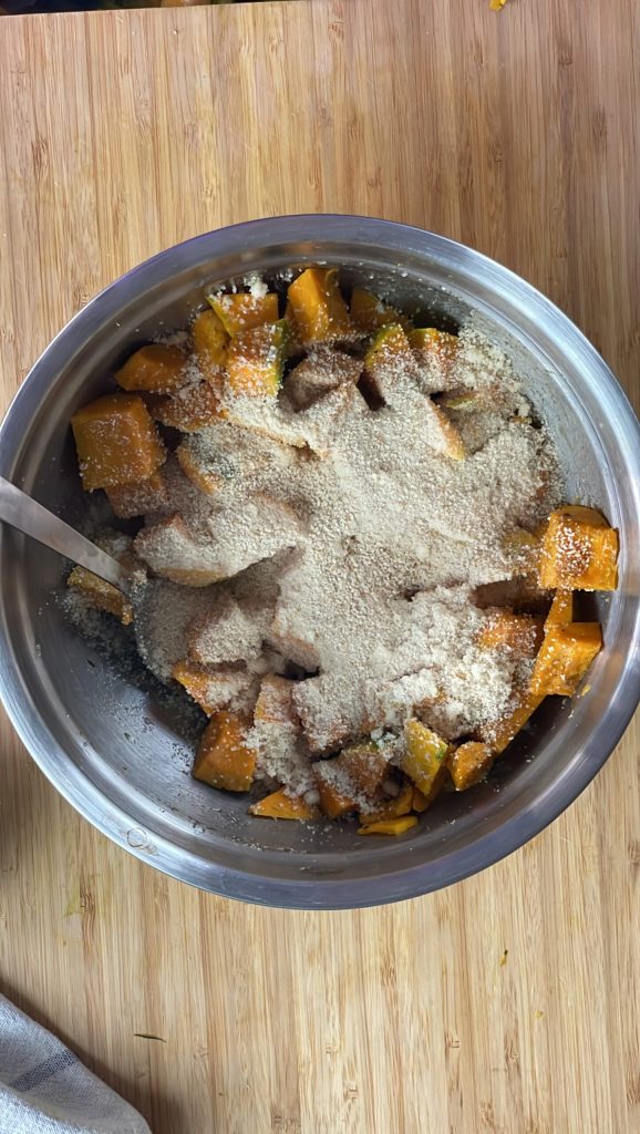 Sandy Pumpkin with Almond Flour, an autumn side dish with a delicate and light taste, perfect to enhance delica squash.