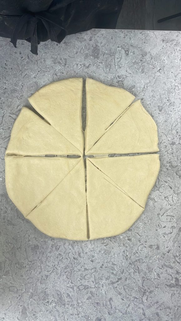 • Divide the circle into 8 wedges with a knife or a dough scraper.