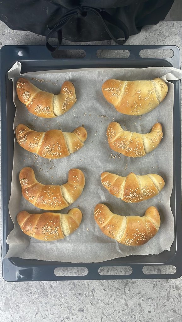 • Brush the croissants with milk and sprinkle them with sesame seeds.
