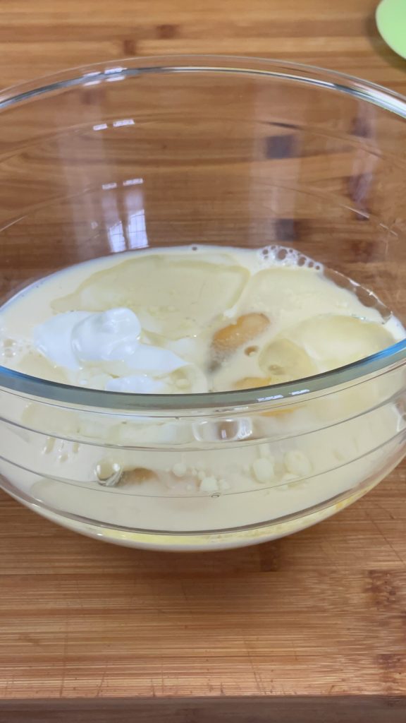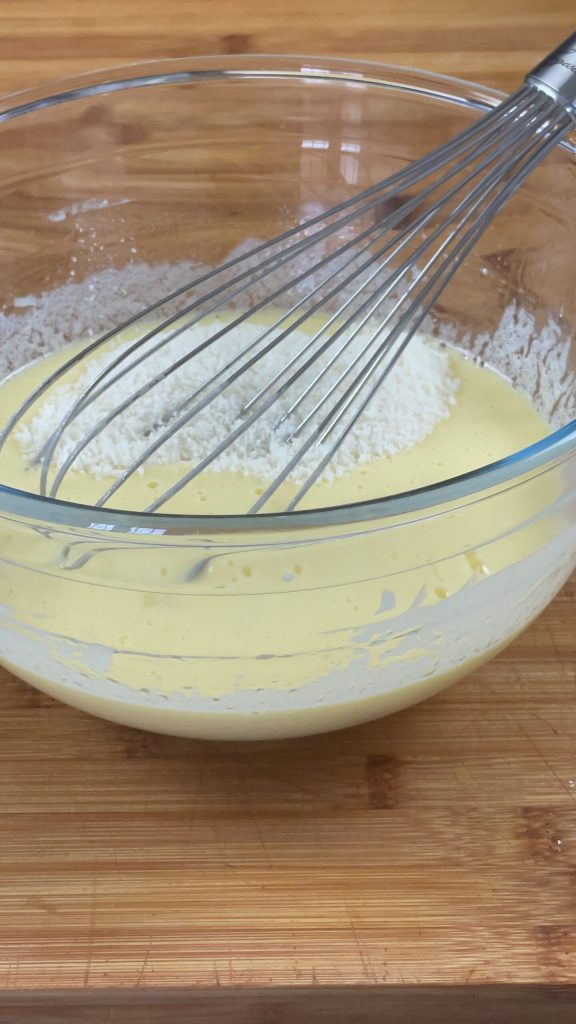 Continue the preparation by adding the grated Pecorino Romano to the liquid ingredients.