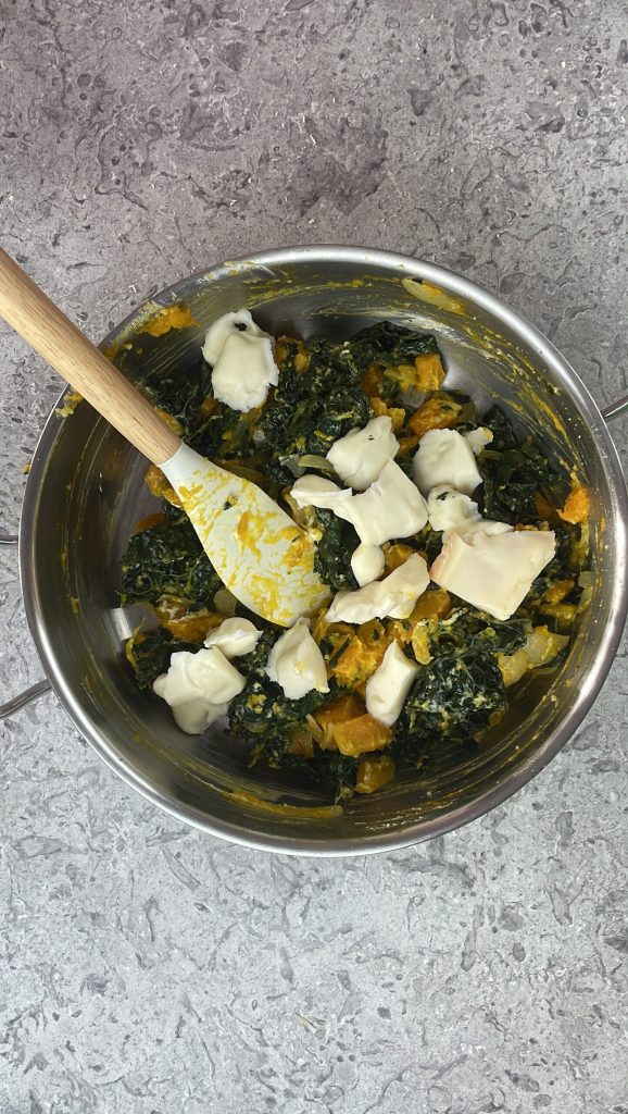 • After 10 minutes, add the cleaned and chopped black kale and cook for another 10 minutes.