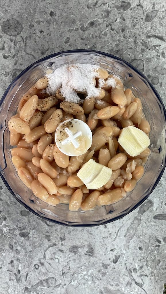 Start preparing the lemon and basil bean cream by draining the beans and rinsing them with cold water.