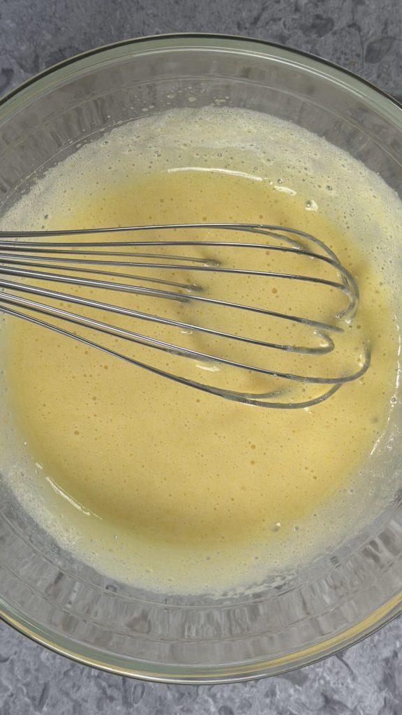 Whip the eggs with the sugar until the mixture doubles in volume.