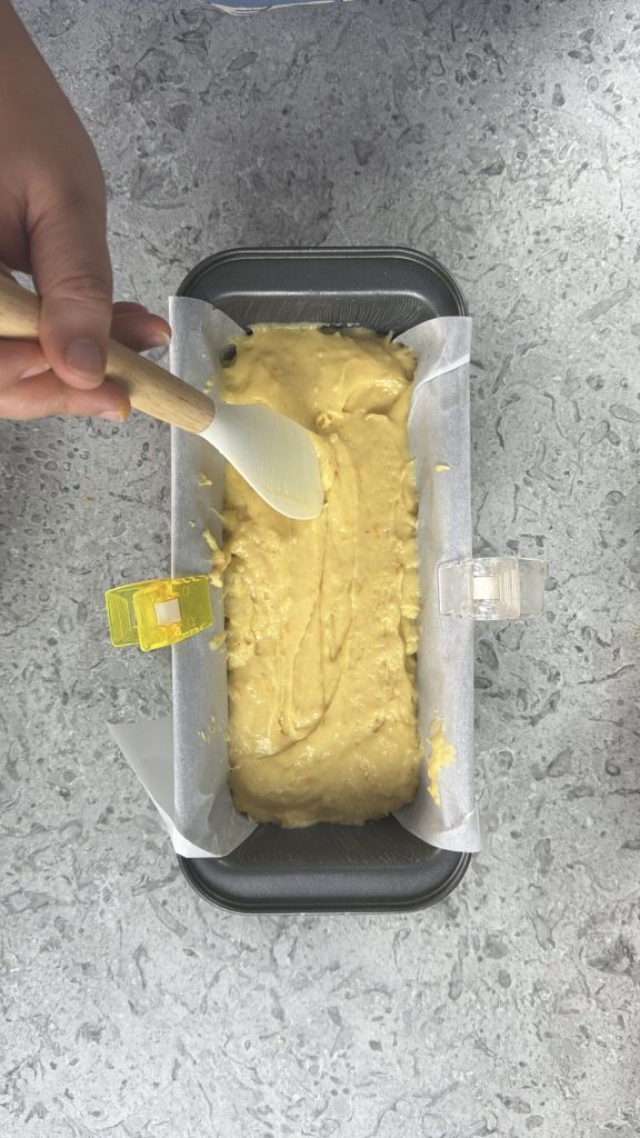 Transfer the batter into an 11.8-inch loaf pan.