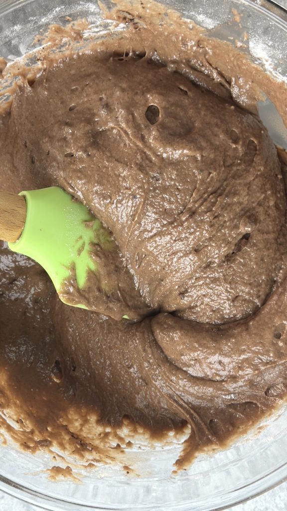 Keep working the muffin batter until it is thick, full-bodied and free of lumps.