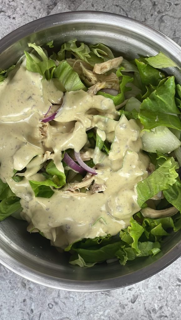 Yes, it’s actually a great idea! If you have leftover roasted, grilled, or boiled chicken, you can use it to make this salad and reduce waste in the kitchen. Just cut it into pieces or shred it before adding it to the other ingredients.