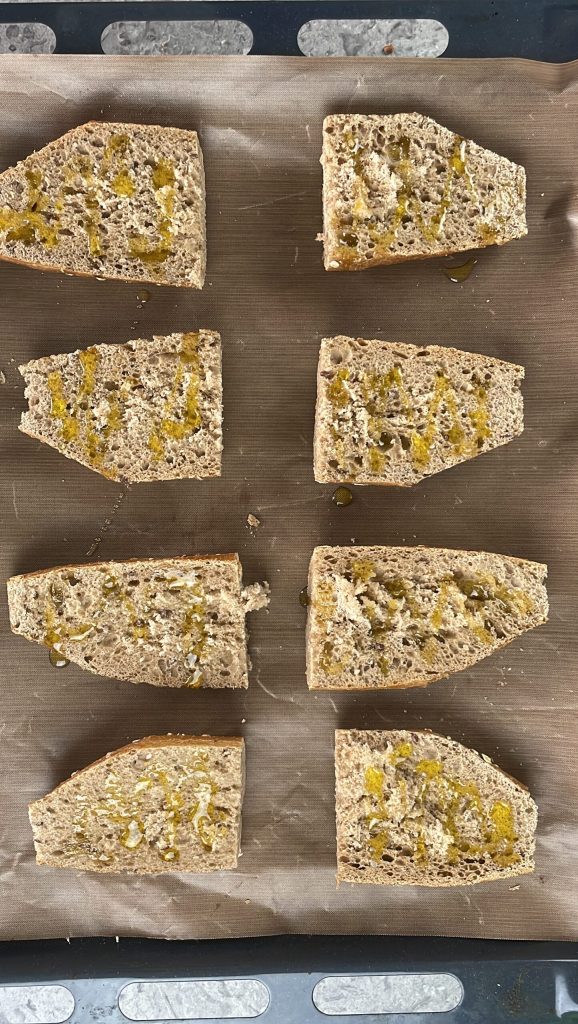 Place the slices on the baking tray and add a little extra virgin olive oil.