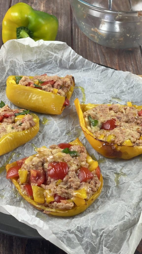 Tuna Stuffed Peppers, a tasty variant of stuffed peppers with a delicious filling of tuna and cherry tomatoes.