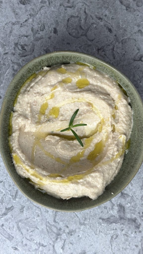 If you love hummus but want to try a different variation, this white bean and rosemary hummus is a simple and surprising solution. Spanish white beans (or similar) give a naturally creamy, delicate texture, while rosemary adds an aromatic note that makes this cream even more inviting. The result is a velvety, balanced hummus ready in a few minutes—ideal when you have little time but don’t want to give up something tasty.