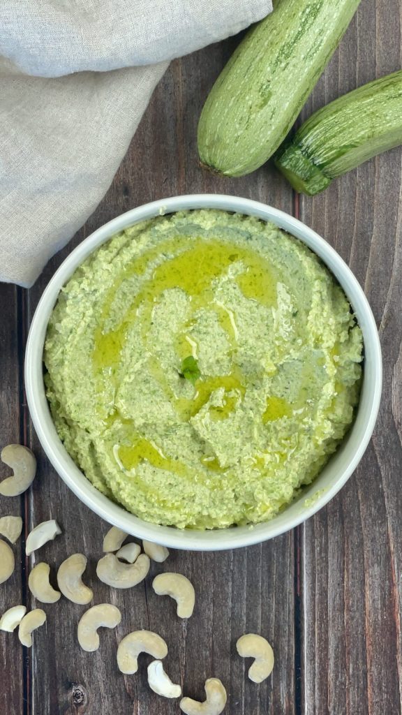 Zucchini and Basil Cream, a versatile and tasty sauce, perfect for pasta, bruschetta filling, or as a veggie dip.