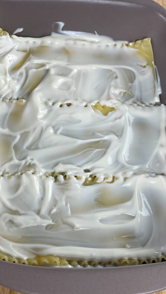 Drain them and dab on a tea towel.Spread a couple of tablespoons of bechamel (find my recipe HERE) on a baking dish.