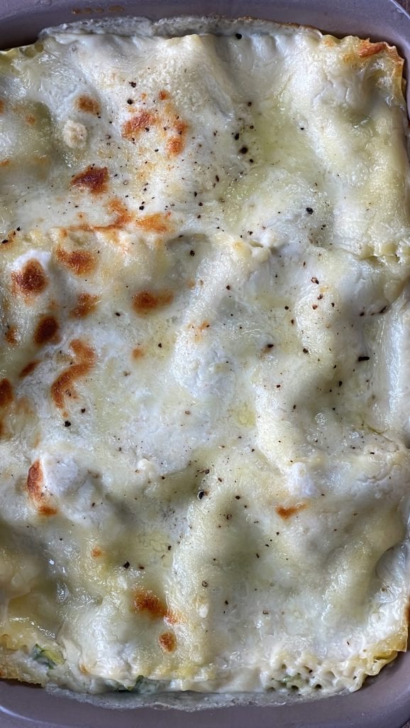If the surface darkens too much, cover the lasagna with a sheet of aluminum foil.