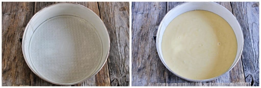 • Take a cake pan, 9-9.5 inches in diameter, preferably with a detachable edge, butter and flour it well, and pour the mixture inside; bake in a preheated oven for about 35-40 minutes (for me, 37 minutes).