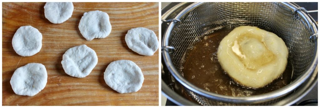 Once ready, heat the oil on the stove to a temperature of 340°F (maximum 356°F); flatten the balls with your hands, pressing them well in the center and leaving the edges a bit thicker, and plunge them one at a time into the hot oil, turning them occasionally.