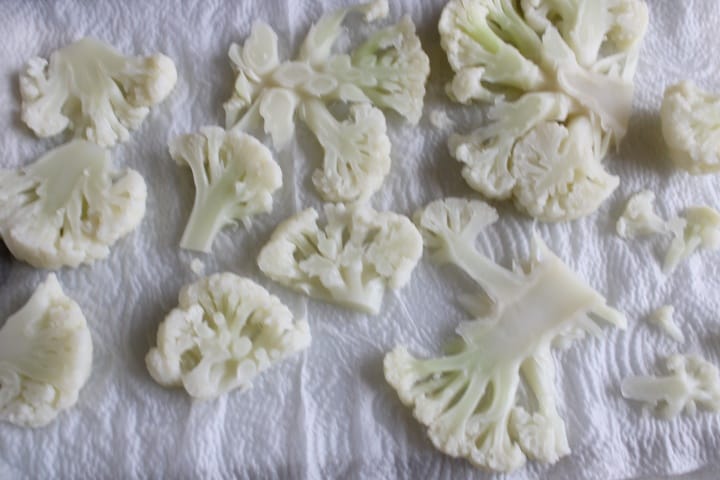In this preparation, cauliflower slices were fried, but they are also great baked in the oven at 356°F, until golden, or in an air fryer.