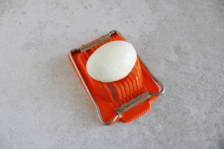 In the meantime, prepare the hard-boiled egg: place the egg in a small pot with plenty of cold water and cook for about ten minutes from the boiling point, then cool under cold running water. Once cold, cut it and set aside.