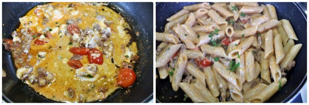 • Here is the Creamy Pasta with Sausage and Cherry Tomatoes ready. Enjoy your meal!