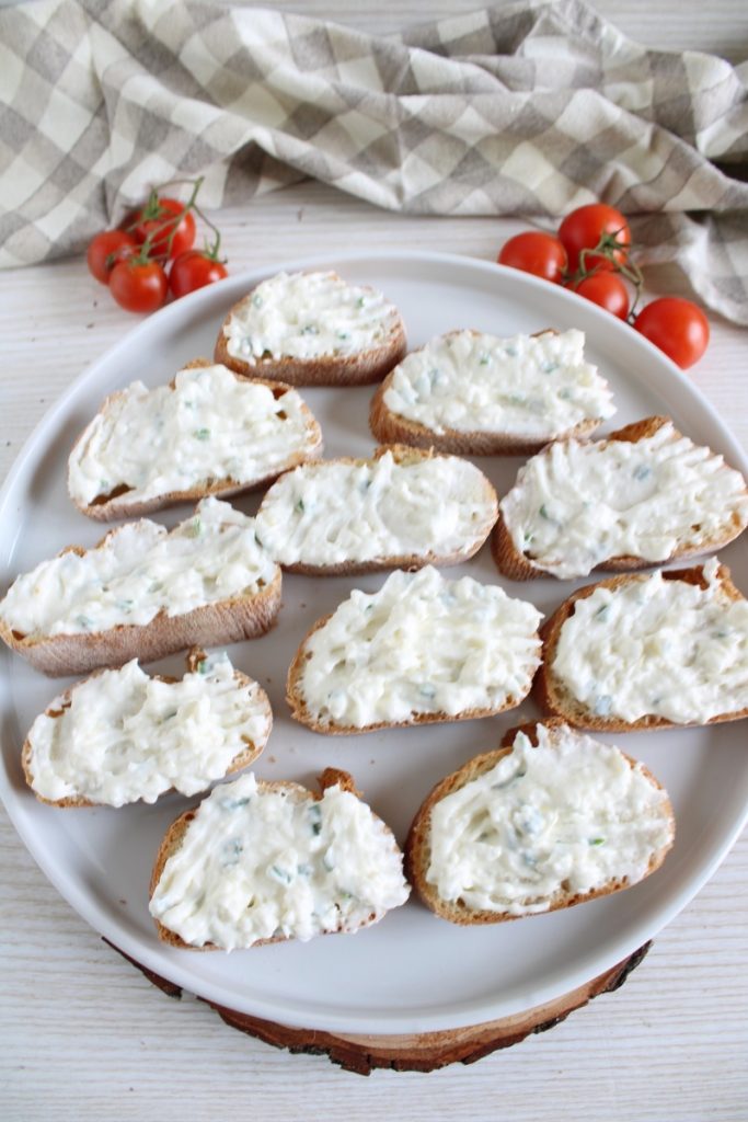 Crostini with Stracchino, Cherry Tomatoes, and Tuna, a very simple and quick appetizer, perfect for a buffet or an aperitif or for a casual dinner with friends.