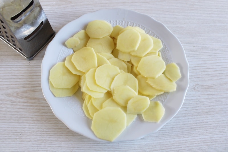 First, wash the potatoes thoroughly and slice them thinly, about 2-3 mm thick.