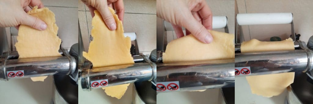 to obtain a sheet about 1/10th of an inch thick. If you don’t have a pasta machine, it’s not a problem: you can also use a rolling pin.