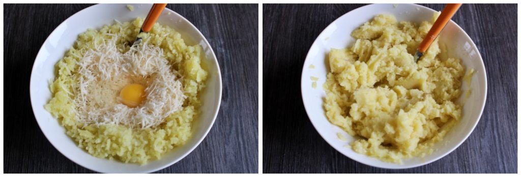 • First, cook the potatoes. Wash and boil them, with the skin, in plenty of water for 20-25 minutes. If you use a pressure cooker, consider 12 minutes from when it starts whistling. Once cooked, peel them and pass them through the potato masher.