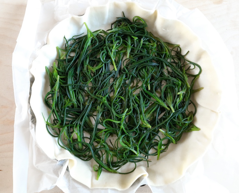 Preparation of the Savory Tart with Agretti and Salmon