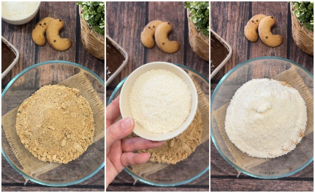Once melted, combine the chocolate with the other ingredients and add the coconut flour (or grated coconut, also known as coconut rapé).